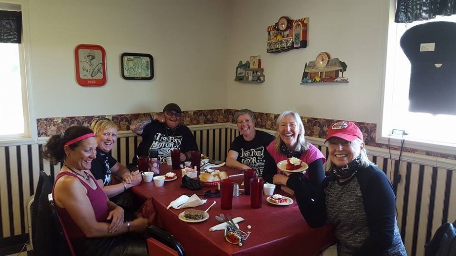 There was just one group in the tiny place when we arrived in our leather and jeans – all women. As with everywhere else they wanted to know where we were riding from and riding to. We laughed and took pictures and shared stories with the next table. About 15 minutes into our meal the place started filling up with the after-church Sunday lunch crowd (ok crowd might be a bit of a stretch). The family next to us started telling everyone who we were and the ride we were on and before we knew it we were the talk of Burnsville. The older ‘church-ladies’ were smiling and laughing and talking about us all being ladies and how exciting this was. I suspect we will continue to be the talk of the town for at least a week or until something else out of the ordinary happens.