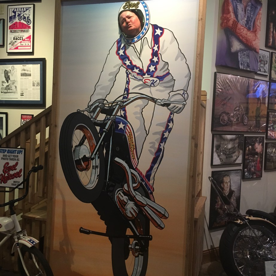 While I love riding my motorcycle, I am not much of a motorcycle enthusiast. I can never really tell a Harley from a Honda at a distance which is blasphemy in some parts. However, the museum was really cool. The history of motorcycles in America is incredibly interesting. There was an entire wall dedicated to artists renditions of motorcycles and bikers. There was also a huge collection of bikes from the early 1900’s to the bike Peter Fonda rode in Easy Rider. They had a whole display of Evel Knievel which brought out the silly in Zandra.