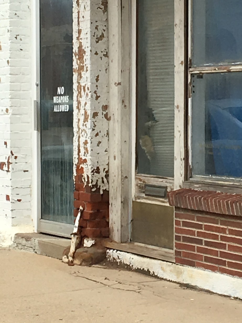 We stopped for lunch at a trendy little cafe in Indianola, Iowa where young people, yoga pants and iPhones were in abundence. I think I saw at least one man bun. As we crossed the street to our bikes I spotted this sign on a decrepit building which seemed incongruous to the atmosphere we had just left but also made me acutely aware that we were moving west.