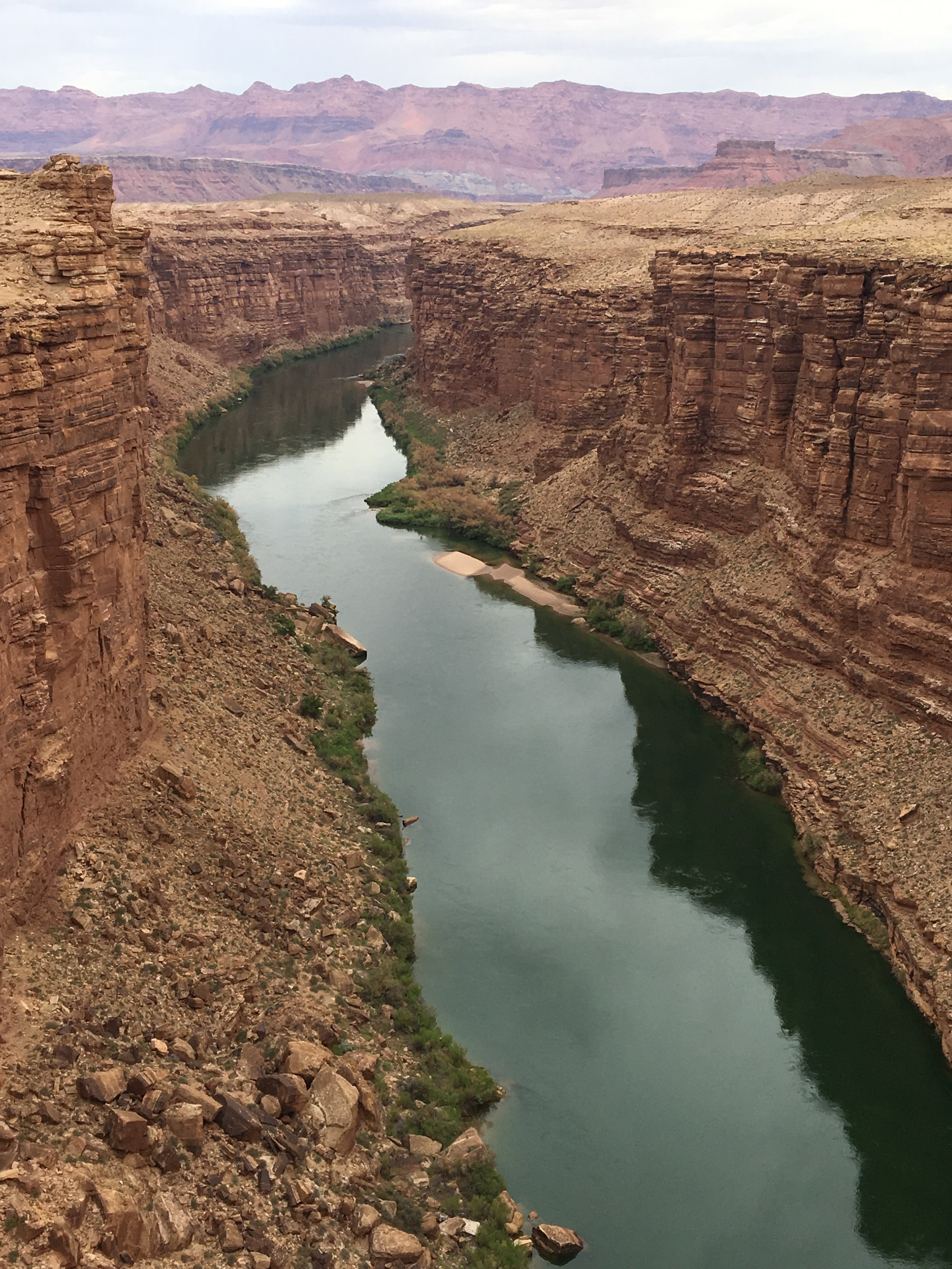 About 70 miles into our journey we came to Marble Canyon where the Colorado River cuts through the desert like a huge green vein.