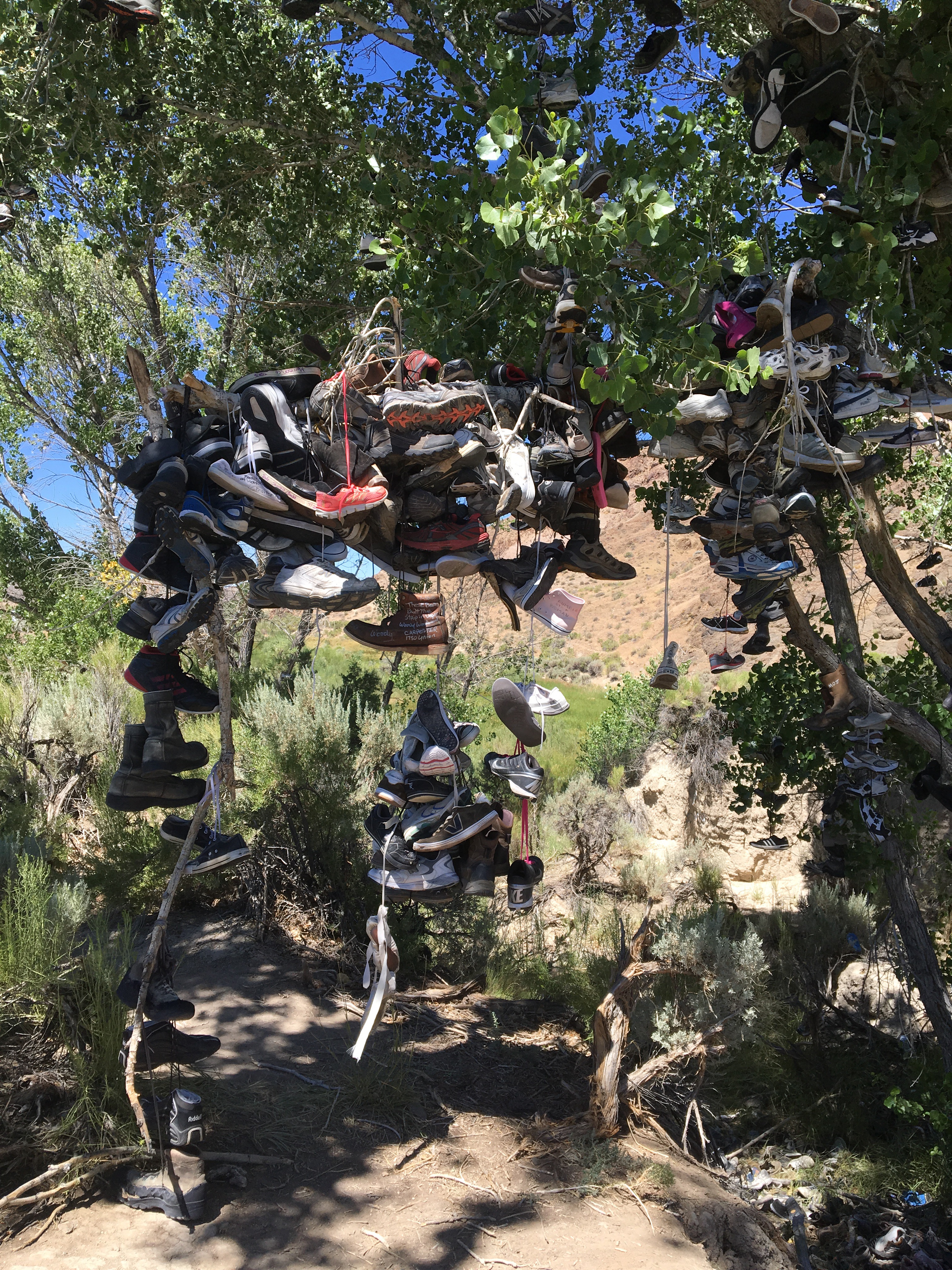 Zandra had done her best however to find a few more interesting tidbits along the way including the shoe tree. This was not the original shoe tree as that was chopped down by vandals on December 30, 2010. Who does that??? But the ‘reborn’ shoe tree, just east of the original, did not disappoint. (Albeit, our diversion bar was not particularly high – see above).